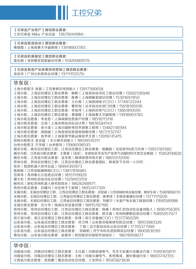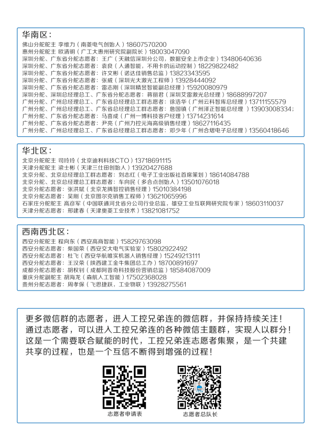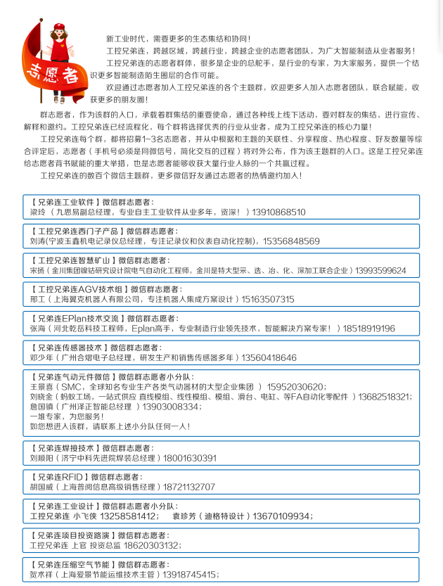 工控兄弟连目前五百多个志愿者,为广大行业中人士提供进群,对接等服务。