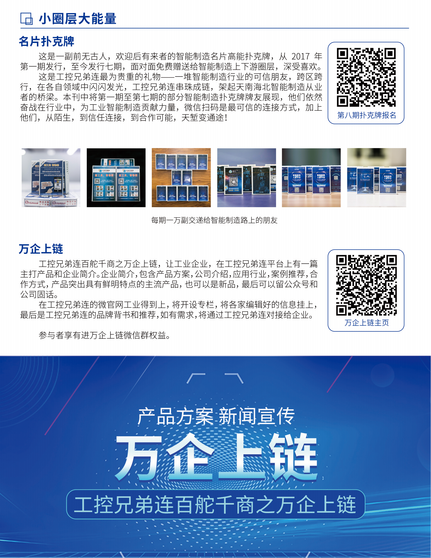 这是工控兄弟连2017年第一期到2024年第七期的扑克牌精选,上面的二维码大部分都是个人二维码,工控兄弟连用这样的方式进行着智能制造从业者之间的扁平化互连,希望在如此内卷的今天能够形成报团取暖,形成可信合作!